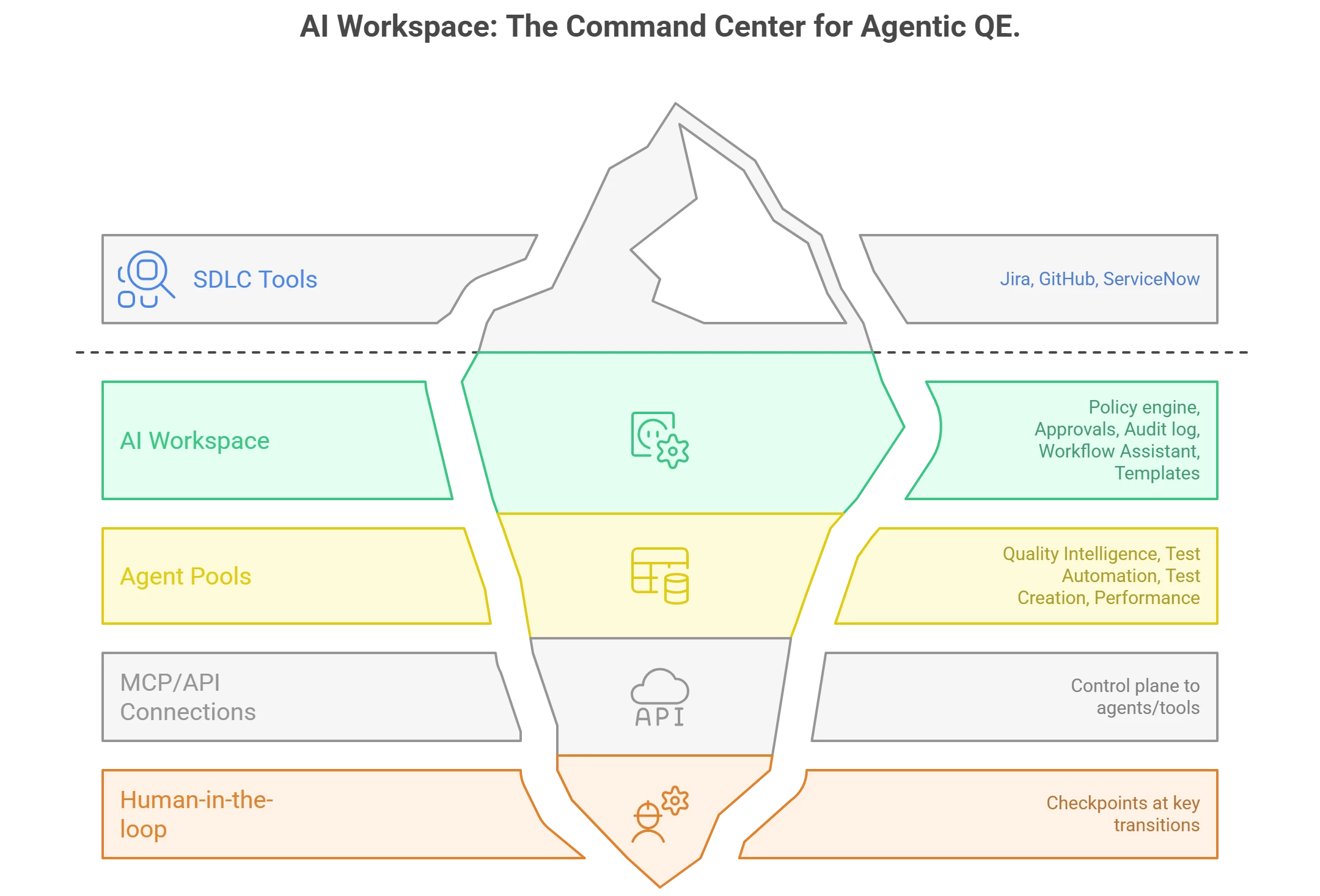 Reinforcement from public sources: Tricentis describes AI Workspace as a control plane to design, run, and govern autonomous quality workflows, including approval steps where reviewers check outputs before continuation.