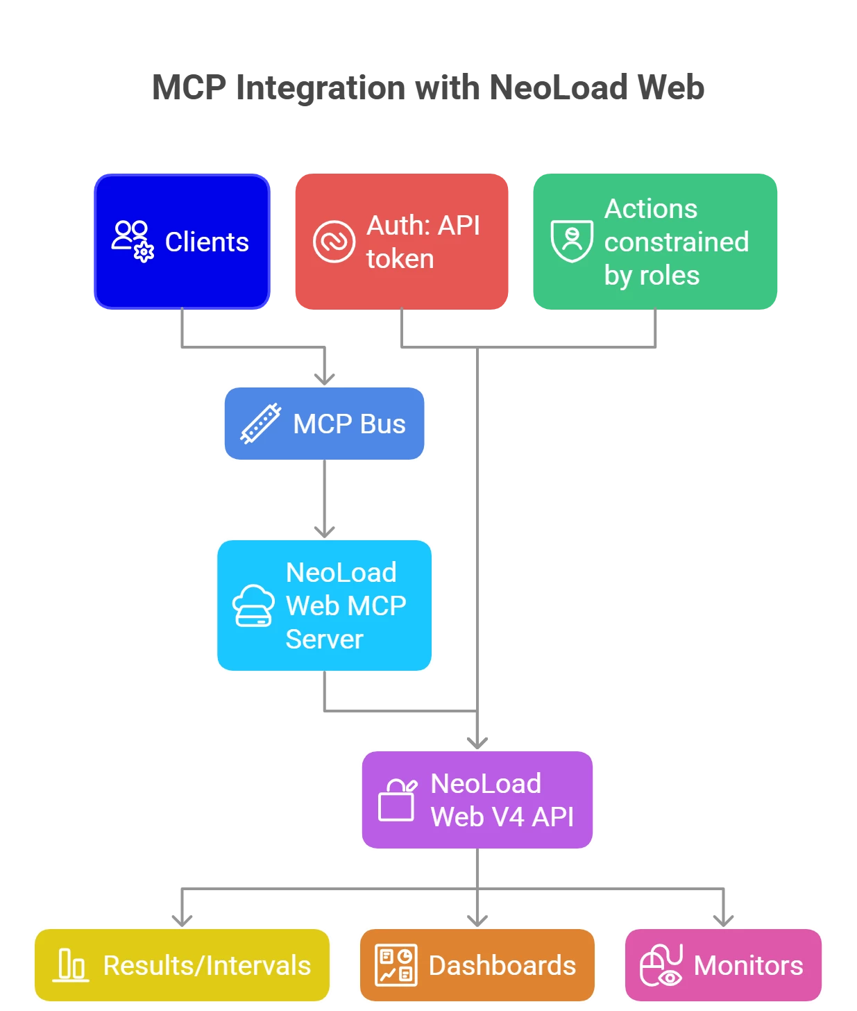 • Uses your API token; actions are limited by your NeoLoad RBAC.