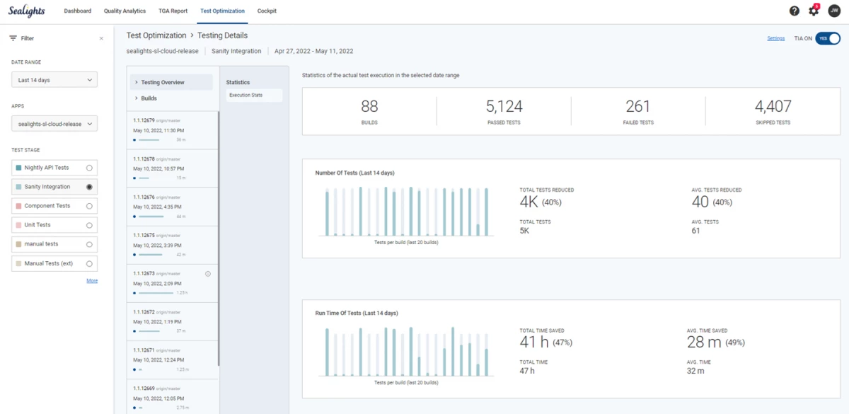 Test Impact Analytics eliminates irrelevant tests from execution, thus reducing the amount of time needed to troubleshoot irrelevant failed tests