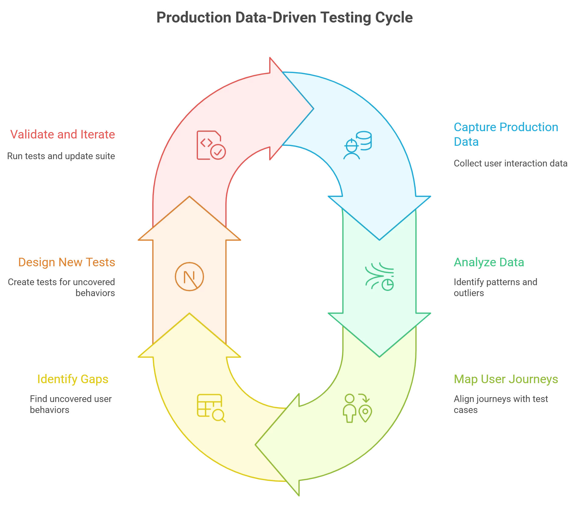 Validate and Iterate: Run the new tests and see if they catch any bugs or fail where expected. This not only validates that the previously untested scenario is now under coverage, but it may also reveal underlying defects to fix. Monitor the results over a few cycles. Going forward, make this analysis a recurring practice – for example, after each major release or on a regular cadence, re-analyze fresh production data with AI to spot emerging usage trends. As your application evolves and users find new ways to use it, continuously update your test suite accordingly. This feedback loop ensures your QA stays aligned with real-world use.