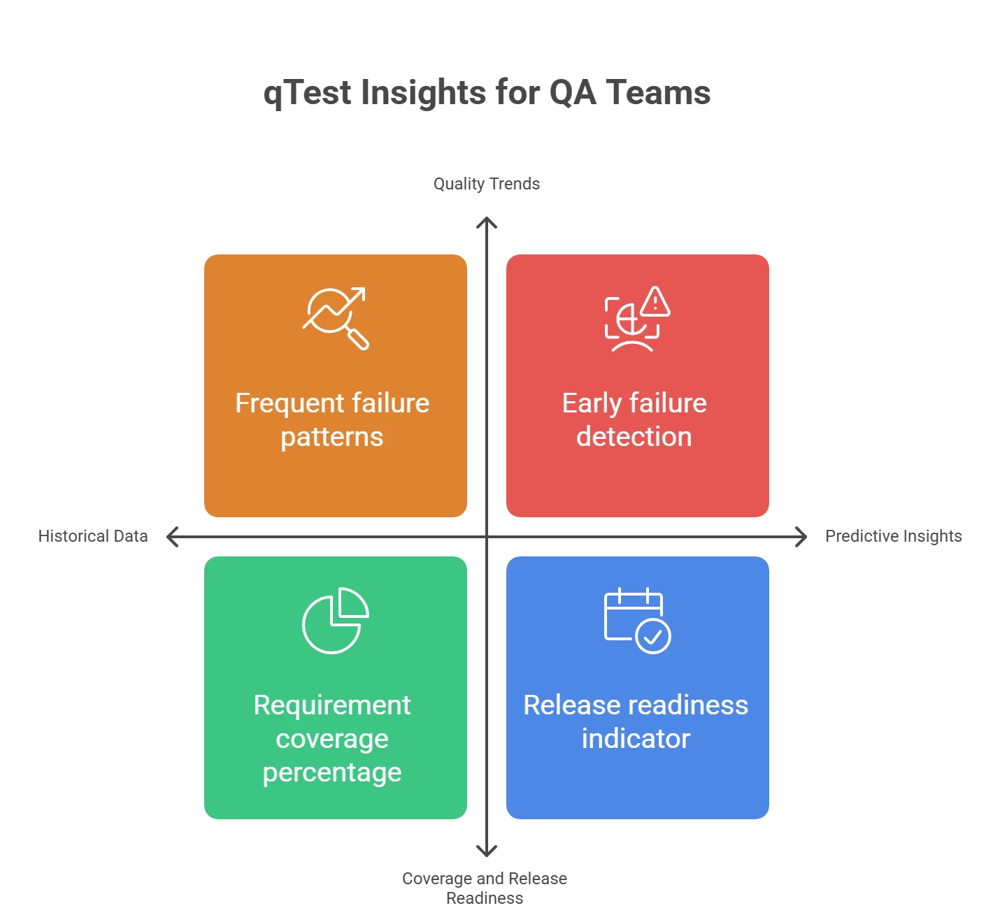 Predictive insights: qTest’s analytics deliver predictive indicators by learning from historical data. If a spike in failures is detected, the system can flag it early. These AI-driven insights let you address issues “before they affect users,” guiding you to proactively improve quality.
