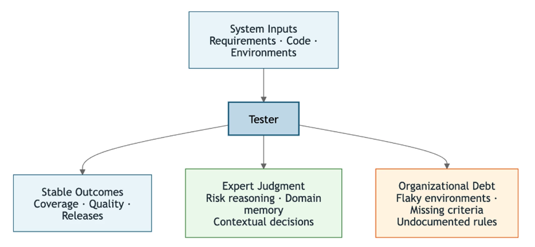 The first kind is genuine professional expertise. A tester reads a requirement and asks not just what it says but why it exists, who depends on it, and what failure would cost the business. They identify the edge case that matters not because it is in the documentation but because they remember a production incident from eighteen months ago. They make risk prioritization decisions continuously and implicitly. These decisions require contextual understanding that cannot be derived from the text in front of them. This is expert judgment, and it represents real and hard-won value.