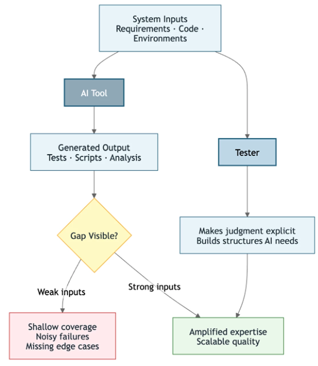 When AI enters testing workflows, weak inputs expose gaps while strong knowledge structures allow AI to amplify expertise.